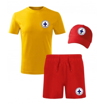 Komplet RATOWNIK – Czapka, Koszulka i Spodenki Kąpielowe