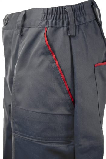 Spodnie MAX-POPULAR do pasa są wykonane z wysokiej jakości materiału, który zachowuje stabilność rozmiarów i kolorów. Oferują regulację obwodu dzięki gumce, mocne podwójne szwy, kolorową lamówkę oraz praktyczne kieszenie: tylną, dwie boczne i kieszeń na miarkę. Idealne dla profesjonalistów ceniących komfort i trwałość w pracy.